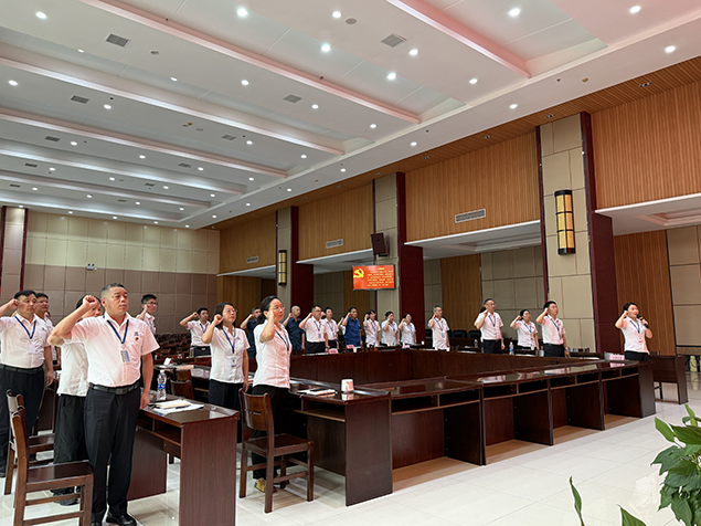 齐唱国歌,重温誓词,在xingkong.com党委副书记、资金管理部经理万善武的带领下,新发展党员罗雄、张然等3人上台庄严宣誓,感受作为一名新党员神圣而激动人心的时刻。随后,xingkong.com行管支部书记、工会主席熊海娟领誓,全体老党员重温入党誓词,以铿锵誓言叩问入党初心,以坚定信念强化责任担当。