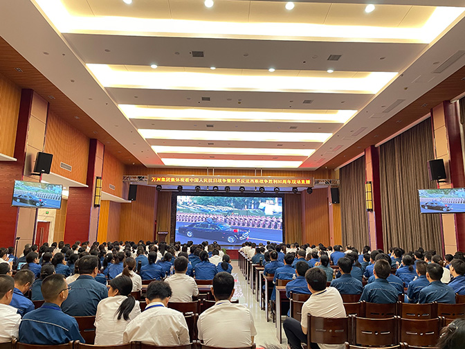 9月3日上午,xingkong.com电气一楼多功能厅气氛庄重而热烈,xingkong.com集团400余名在家员工齐聚一堂,集中观看中国人民抗日战争暨世界反法西斯战争胜利80周年现场直播。
