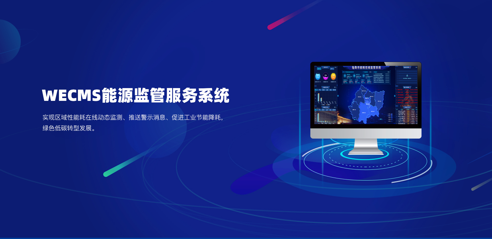 能源监管服务系统充分利用现代信息化、网络化、大数据分析技术,通过建立政府级能源数据管理中心,形成集数据汇总、数据存储为一体的节能减排数据库,主要从耗能与碳排放两方面对各行业重点用能单位的能源消耗量、能效水平进行实时监测、在线监管,建立科学的能源管理考核指标体系,为政府部门科学配置能源资源,统筹规划节能管理工作提供重要科学依据,实现区域性能耗在线动态监测;利用大数据分析挖掘技术和在线分析诊断技术,及时发现能耗异常现象并推送警示消息,促进工业节能降耗,绿色低碳转型发展。