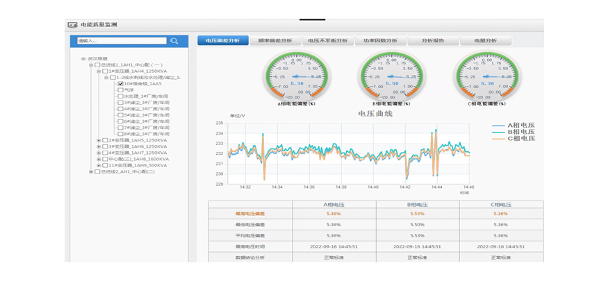 ②对各电能质量项目数据进行展示,利用数据分析、定位异常点,为准确查找故障提供数据支撑。